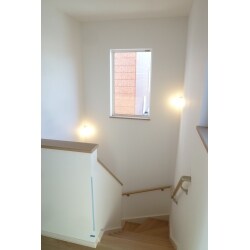 二階の間取り変更に伴って階段の上り下り口の位置変更と、傾斜が少し急でしたので少し緩く、暗い雰囲気を明るくしてもらう事を希望しました。