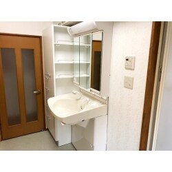 手洗いで洗濯しやすいよう、洗面ボールが大きく深さがあるものをご希望でした。 また、座りながらシャンプーが出来る機能(洗面ボールが上下する機能)や、車いす等高齢になられても使いやすい洗面台をご依頼頂きました。