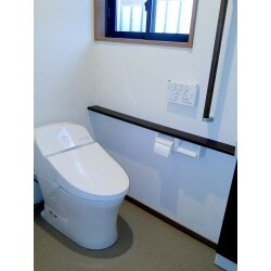 ・既設のタンク付きのトイレからタンクレスへ変更し、間仕切りを解体してトイレの向きを変更する事で広々としたトイレになりました。 ・併せてサッシも変更する事により、寒さ対策も万全です。