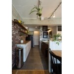 移動可能な範囲で間取りを再構築。 特筆すべきは浴室の移設。マンションで可能な範囲を広い浴槽実現のため計算。 玄関周りに収納スペースを多く確保しながらも、各所でスペースを広げることに成功。 LDKも正方形に近い形になり空間の広い活用が実現。対面キッチンのスペースから全体を見渡せる構造になり、一体感のある空間になった。