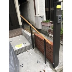 お客様が介護認定をうけて手摺りがないと歩く事に、少し不自由だと言う事で、住宅改修工事で石の階段と花壇、門柱を撤去し、歩きやすくしました。お客様には大変喜んで頂きました。