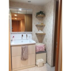 現在広い間口の洗面化粧台だが、場所がもったいないので、洗面化粧台を小さくして、そのスペースを別の使い方をしたい。