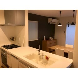 キッチン廻りの袖壁が高く圧迫感があったのでその部分をなくしたり、人工大理石の対面キッチンにすることで開放的なキッチンを作るご提案をしました。 ご一緒にメーカーのショールームに出向き設備機器の仕様を決定させていただきました。 クロスはアクセントで一面を濃いグレーに変え、照明も変えることでイメージをガラリと一新させました。 お客様にも気に入っていただけたので良かったです。 ありがとうございました。