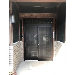 木製の玄関からアルミ製玄関に取替をしました。壁部分を抜いて、YKKAPのランマ付きの玄関引戸【れん樹】を採用しました。