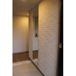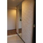 毎日ご利用になる玄関やリビングなので、 機能性だけでなく、 飽きのこないデザイン性にこだわった 鏡と自然な色合いのエコカラットをご提案しました。