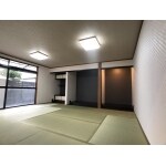 来客が多いのでとにかく広い応接間にしたい。和を残しつつモダンな印象にしてオシャレにしたい。 中心の床の間には壁掛けテレビを設置したい。配線が見えないような施工をお願いしたい。