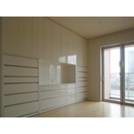 この度は、お客様に喜んでいただけたようで、嬉しく思います。ご入居前の新築分譲マンションの工事ということで、キズなどを付けてしまわぬよう細心の注意をもって養生し、施工させて頂きました。お手持ちの収納家具と同じテイストでまとめようと、素材や色柄を考慮しプランニングしました。また、ありきたりな収納にならないよう、内部にダウンライトを取り入れてデザイン性を演出した家具に仕上げました。末永いお付き合いができればと思いますので、宜しくお願い申し上げます。