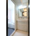 清潔感ある洗面台で置台も広々!大きな鏡でちょっぴり贅沢!