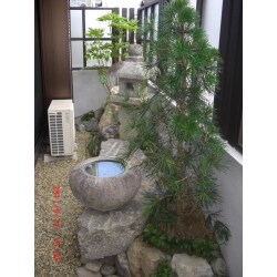 織部灯篭と水鉢の調和した坪庭に仕上げました。