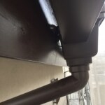 屋根に上がると他社施工の屋根塗装の施工不良により、全体が腐食、下地や破風板箇所の貼替えをご提案。樋も交換します。