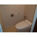 入居前修繕工事として、全室クロス張替や木部(巾木・サッシ枠)塗装替、ブラインド・カーテン交換、換気扇交換等を行いました。 トイレは、天井・壁クロス張替と木部塗装、アクセサリー関係設置を行いました。
