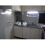 入居前修繕工事として、全室クロス張替や木部(巾木・サッシ枠)塗装替、ブラインド・カーテン交換、換気扇交換等を行いました。 キッチンは、クロス張替やパネルの塗装補修を行っています。