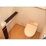 トイレはタンクレスを使用し空間を広く利用し、手洗いをつけて使い勝手をよくしました。