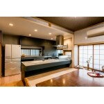 キッチンはTOTOのザ・クラッソの深みのある色を選択していただき昔ながらの和のテイストとキッチンがうまく融合したと思います。 また既存タイルを一部残すことで、昔の名残も残せました。床に関しては今までの床材と遜色が無いよう、床材は床暖房対応の挽板のフローリングを採用し、廊下との色合いに合わせました。また、寒さ対策としてキッチン、ダイニングに床暖房を設置し、天井、壁には断熱材を入れました。 今までの掘りごたつの天板と足に使われていた格子を再利用しテーブルへリメイクしました。