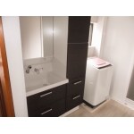 洗面化粧台の横に、大容量のトールキャビネットを設置しました。