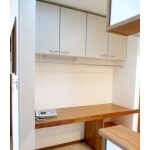 奥行きが深く、開き扉の収納なので物の出し入れが大変でした。結局はすぐに取り出せる、作業スペースやカウンターに物を置いてしまうことに。