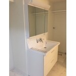 収納は鏡の裏に。洗面ボールも広くなりお掃除もしやすくなりました。