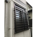 横面格子に強度を持たせるため、縦に方立を入れております。窓を小さくした部分には面格子と同色の断熱パネルを入れて施工しております。