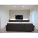 間接照明とベース照明の照明プランを行いました。 ベース照明はBluetoothで接続することでタブレットで操作が行える商品をご提案しました。 タブレットで1台ずつ管理できるので、ソファに座っているときに手元照らしたいときは上部にあるダウンライトをより明るくしたり、映画を見る時は全体的に暗くしたりできるようになります。 お客様の生活に合わせて雰囲気が作れるようにご提案させて頂きました。