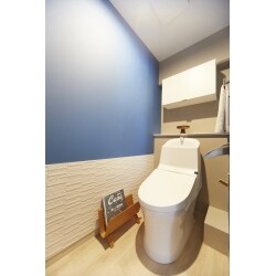 - 調湿効果のあるエコカラットを採用。ブルーを使い素敵なトイレに