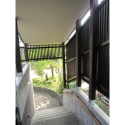 (旧株式会社東亞での事例です。)風の強い時は玄関先まで雨や雪が吹き込んでいました。対策として屋根と風よけを設置しました。