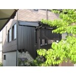 (旧株式会社東亞での事例です。)雨風、雪などを防ぐために施工させていただきました。また外観のイメージを崩さないように、板金の色やエクステリアの色を決めました。