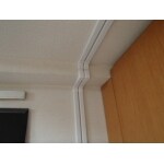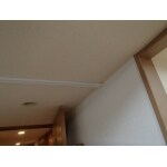 天井裏を通して、無目枠の横のじゃまにならない位置にスイッチを移動しました。 この面もクロスを一部張替えています。