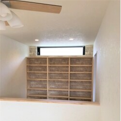 書斎コーナーの壁一面に本を収納できる本棚が欲しいとご要望でした。 アクセントの壁紙を活かした本棚が欲しいとのことで、壁紙が見える本棚を壁一面に作らせて頂きました。