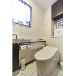 - 湿気対策とデザイン性で壁にエコカラットを取り入れたトイレ