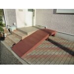 玄関スロープは、アルミや鉄製の金属ではなく、高齢化したわんちゃんの足に優しい木材を使用しました。
