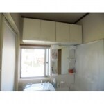築年数も古く、全体的に収納スペースが少ない印象でを受けたので、洗面室の窓を半分つぶし、洗面台にミラーキャビネットを備え付けることでお客様念願の鏡と収納スペースを確保する提案をしました。