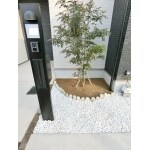 草が伸びて手入れに困っている。 庭(カーポートの周り)の芝生を全て剥がして石を敷き詰め、庭にある木を囲んで植木エリアの設置をご希望でした。
