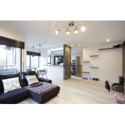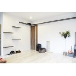 もともと黒系の家具をお持ちでしたので、それに合わせてシンプルモダンの内装をご提案。 最初にお宅にお伺いした際に猫ちゃんたちがキャットタワーやクッションの上で寛いでいる姿を見て造り付けのキャットウォークなど猫ちゃんのためのご提案を盛り込みました。