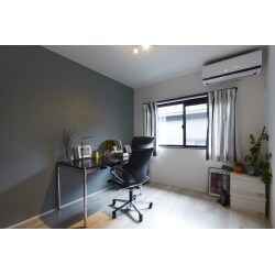今はAさんの書斎だが、いずれはお子様のお部屋としても利用可能。そのため、大人にも子どもの嗜好にも合うようなグレー系のアクセントクロスを採用している