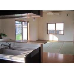(旧株式会社東亞での事例です。)ダイニングと畳の居間の壁を無くし、一つの空間になるようにしました。キッチンは対面型にし、リビングを広げることにより家族団らんできるような空間づくりになったと思います。また大きなはき出し窓や腰窓を作ることにより採光と通気を取れるようにしました。