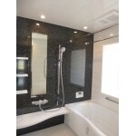 LIXIL アライズ。サーモバスSは、ダブル保温構造でお湯が冷めにくい浴槽なので、家族の入浴時間が違っても、最後の一人まであたたかく入浴できます。天井照明をダウンライトにすることで、空間がよりすっきりするようにしました。