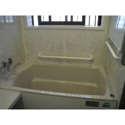 ぴったりサイズのシステムバスに断熱浴槽・引き戸・手摺りを3か所に設置、窓ガラスをペアガラスに取り替え。バリアフリー化と浴室の断熱性を高める事で暖かな浴室を実現していただきました。