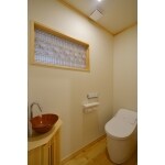 間取りを考慮し建物の中心に設置したので明かり取り窓を設置しました。元々の住宅で使われていた組子を窓の装飾に利用しています。明かり取り窓の効果で課題だった明るさの問題もクリアし、清潔で快適なトイレになりました。