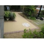 庭を整備しつつ車いすアプローチを造作。 レンガと天然石のワンポイントが明るい気分にしてくれます。