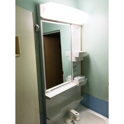 実家の洗面所の床、洗面台の新規交換、トイレの便座を温水洗浄便座、トイレの照明器具の設置、便座とトイレの照明のために電源を引き込んでほしい。