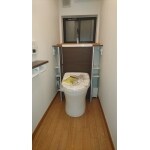 トイレに便器・手洗い器・手すり付収納棚が設置されている為、何となく狭く感じるのでまとまられる部分はまとめてスッキリとさせたい。 洗面台も劣化してきたので、収納力のあるタイプに交換したい。