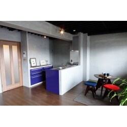 ・和室を少し小さくし、LDKを広く取りました。しかし壁で和室とLDKを区切ってしまうと狭く感じてしまう為、可動式の建具を取り付け、普段は一か所に扉をまとめオープンな空間になり、お客様がいらっしゃった際には扉を閉め、壁を作り和室のプライベートな空間を守ることができます。 ・一部床を土間で仕上げ玄関からそのままお部屋に入る事ができ、土間の上部には旦那様の趣味の自転車を設置する用のパイプを取り付けました。 ・洗面化粧台を以前の物より小さくし、洗濯機を移動させ、以前洗濯機があった部分は、収納がたくさんできるように壁一面可動棚を設置しました。 ・LDKの壁はモルタルで仕上げ、仕上がりに合わせて照明用のスイッチをオーダーでアメリカンスイッチを取り付けました。