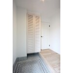 玄関土間タイルの幾何学模様が空間のアクセントとなっており、フローリングや建具と絶妙に調和しています。玄関収納もトールタイプの収納力があるタイプをセレクトしたので、靴や傘などたくさん入ります。