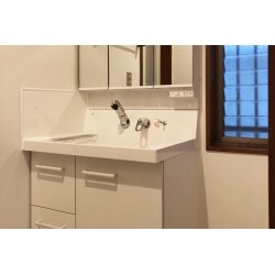 1階洗面台は奥様が掃除のしやすい背面水栓の洗面台、LIXILピアラに交換。 2階洗面台は冷蔵庫と並べると50cm幅のものしか入らないので、既製で50cm幅のものがあるLIXILオフトをお選びいただきました。 お客様には両方とも、LIXILのショールームで見て触って気に入っていただきました。