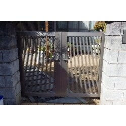 すっきりとした縦格子デザインの門扉に替えました。シリンダー錠もついて、防犯効果も高くなりました。 使用商品【四国化成 クレディ門扉2型】