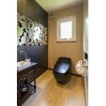 全体的なイメージを合わせると重厚感あふれるブラックトイレはLIXIL製品がおすすめ。トイレのドアを開けるとクラシック音楽が。ゆったりとした高級トイレを作ります。