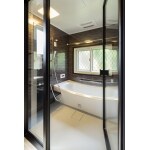 洗面脱衣室と一体化させることで、開放感あふれる浴室をコーディネート。お風呂は床の感触が柔らかく乾燥が早いため、お掃除も楽ちんです。