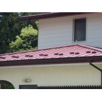 既存の屋根を剥がして新たに下地を作り、全体を金属製の屋根に葺き替えました。 軒天補強、破風の補修をし、新たに屋根に雪止めを取り付けました。 玄関側2階の正面の壁は、金属製のサイディングに一部張替えをしました。