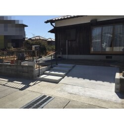 階段は、踏み幅を広くし連続的ではなくゆったりと昇降出来るようにしました。あと今後の事を考えて手すりも設置しました。駐車に関しては、スロープを配置して確保しました。