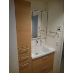 ユニットバス交換と合わせて、洗面台を交換したい。 新しいユニットバスと色合いを合わせたい。 洗面台の間口を狭くして収納を増やしたい。